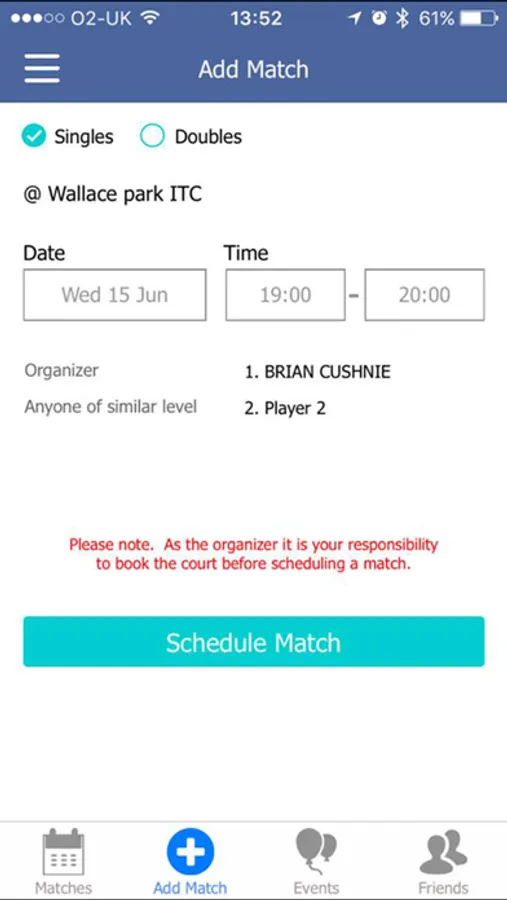 The ‘Play More Tennis’ app allows players to book courts and see what's on at their facility. It also allows them to arrange matches, both singles and doubles, with players of a similar ability level.