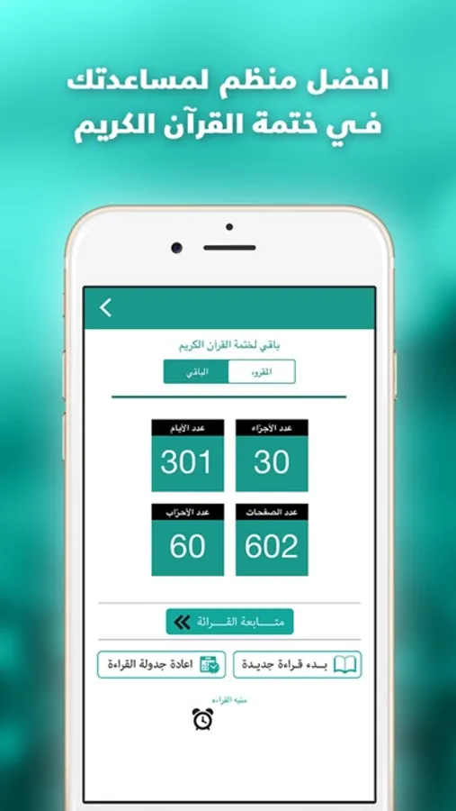 التطبيق يساعد المستخدم على تنظيم ختمة القرآن الكريم بأكثر من طريقة مثل: