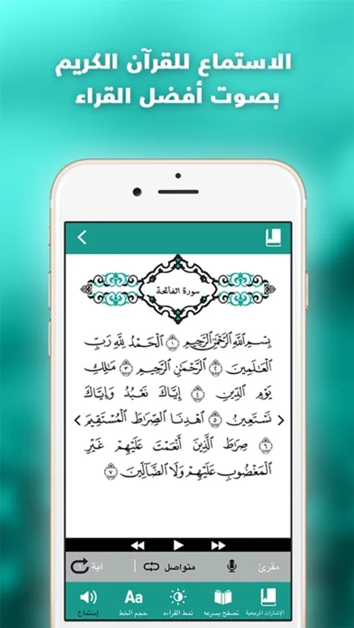 - ميزة الإستماع للقرآن بأصوات مختلف القراء، بالإضافه إلى أن المستخدم سيتطيع رؤية الآيه التي يقرأها المقرأ.