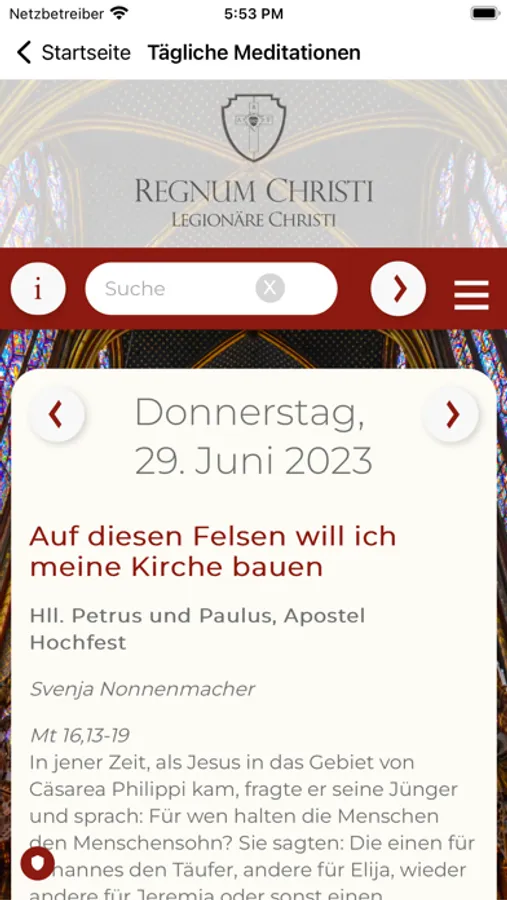 Das ist die App der Regnum-Christi-Föderation im deutschsprachigen Raum, zu der auch die Ordensgemeinschaft der Legionäre Christi gehört. Sie ist für alle, die mit uns im Kontakt sein wollen, an News oder Veranstaltungen interessiert sind, oder mit uns beten wollen. Funktionen:
