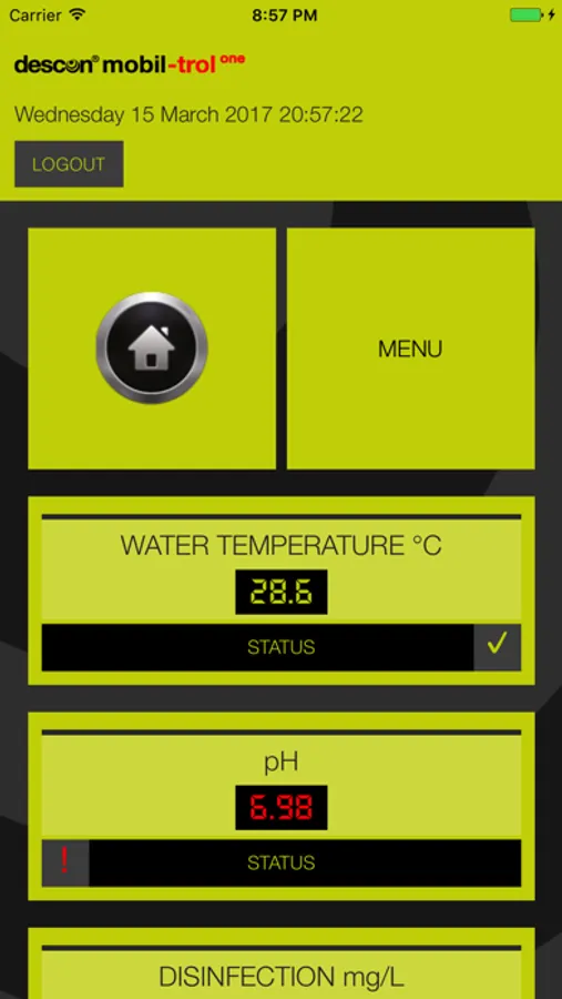 Visualize the most important parameters of your pool, e. g. temperature, pH value, free chlorine, hydrogen peroxide and ORP-value.