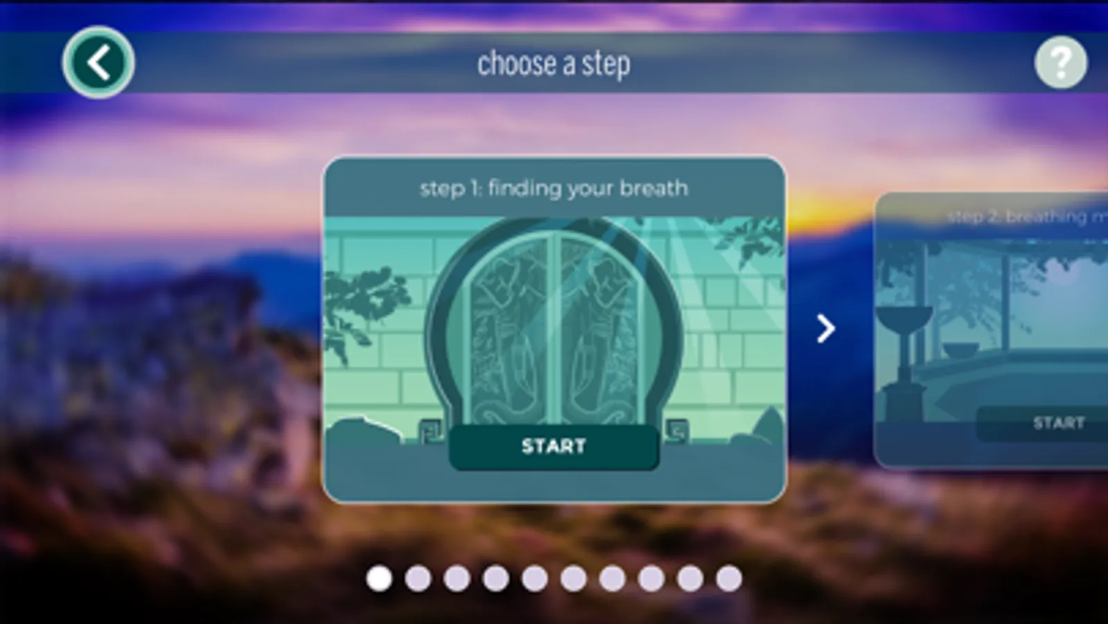 In this 10-step program, you will be taken through three parts - an introduction, guided meditation, and practice event. Going through the program, and following the breathing indicator, you will learn to control your breath to promote a sense of calm and wellbeing as you progress.