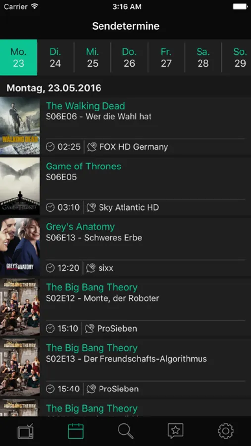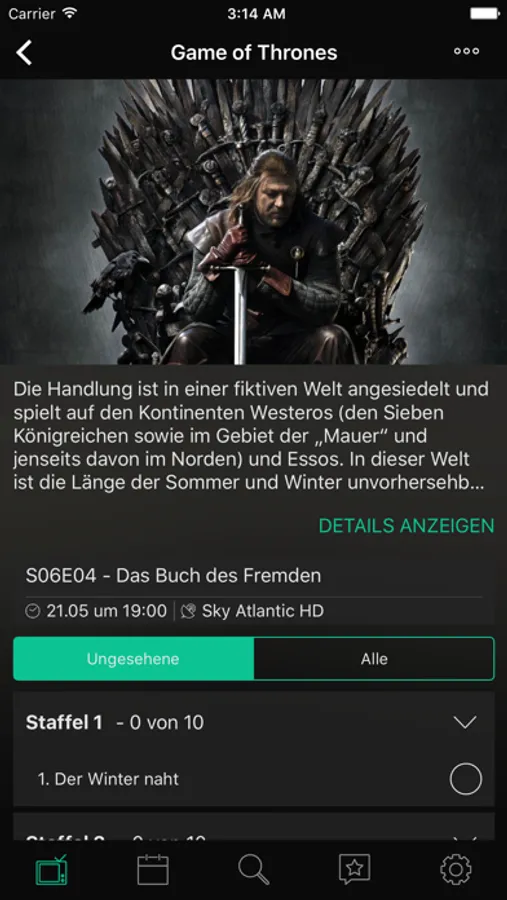 tvshows helps you to follow your favorite series, discover new formats and shows you when and where episodes going to be broadcasted. You get information about series, single episodes and an insight in your viewing behaviour with the help of statistics. Different from trakt.tv all your data is saved on the device. Be always up to date and tick of all series you watch on Netflix, Amazon and Co. Miss never an episode of your series like Game of Thrones, The Walking Dead or The Big Bang Theory.