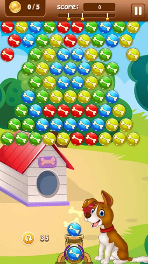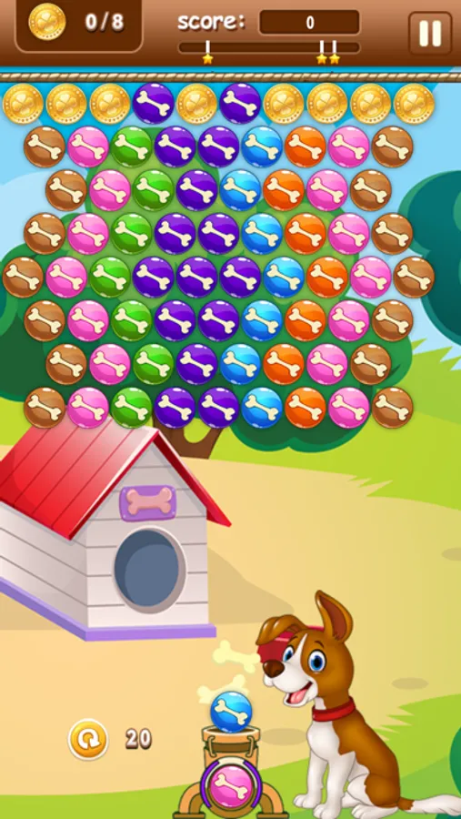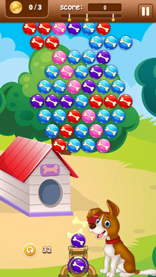 You will enjoy over 100 exciting and colorful levels. The game is incredibly simple, you need to connect multiple bubbles with the bones, of one color, aiming to restore the line and shoot, going to the next level.