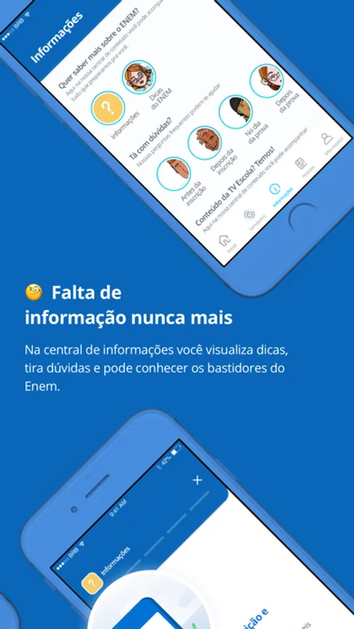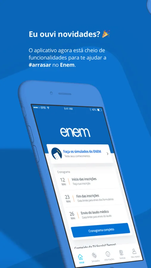 O aplicativo do Enem é apenas para consulta de informações sobre o exame. As inscrições são realizadas EXCLUSIVAMENTE no endereço eletrônico do ENEM.