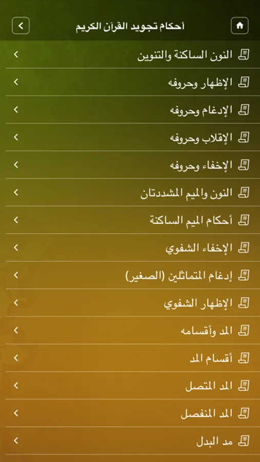 The contents divide the Ahkam Al Tajweed of the Quran into nine sections, each section contains Ahkams that suit them to distinguish a special color, so it was not our purpose is to absorb all the theoretical Ahkams, but the primary purpose is discriminatory Ahkams that could be suspect on the trainee user or the Mediterranean.