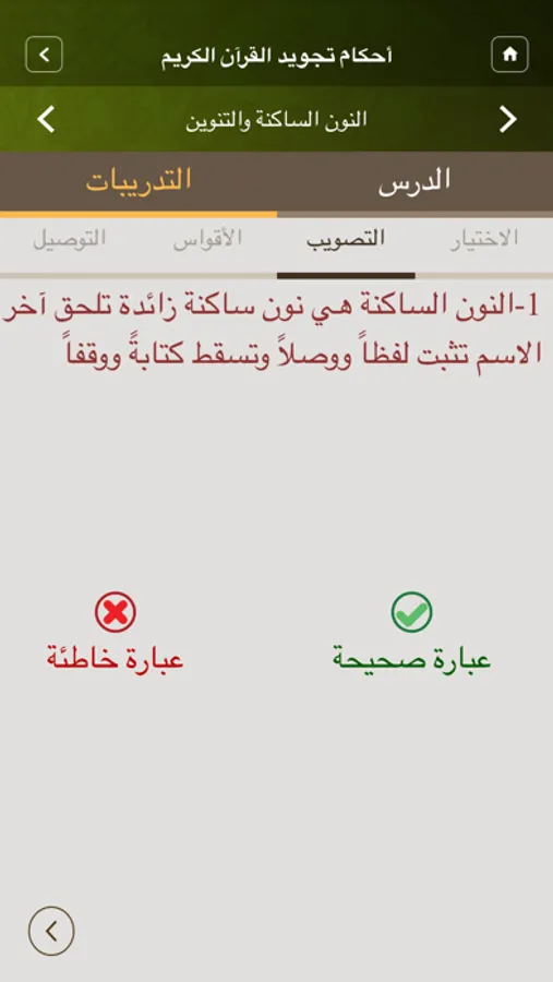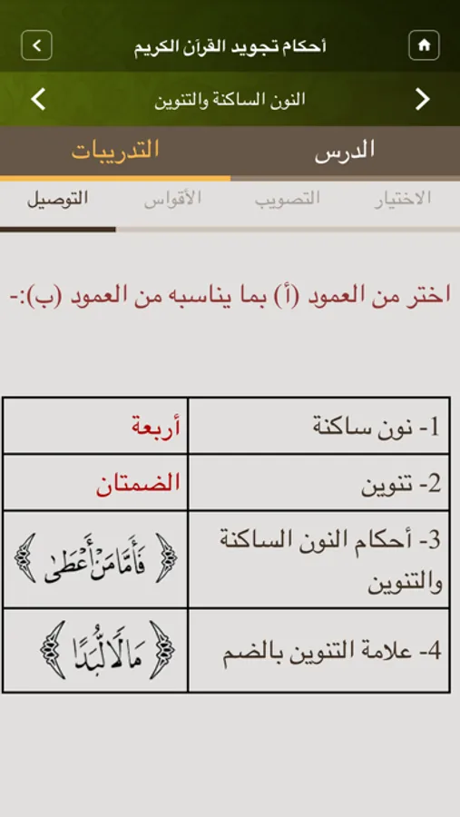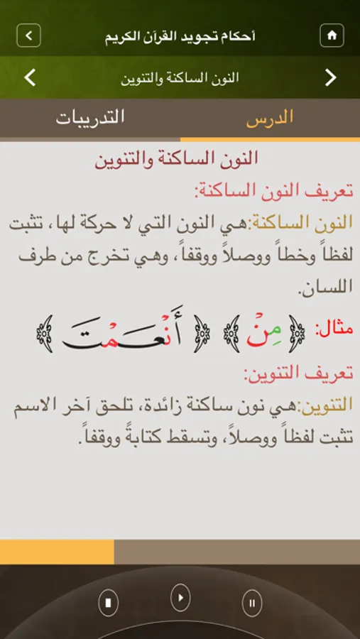 - شرح وافي لأحكام التجويد في 29 درسا، وتضم الدروس تدريبات على كل درس وهناك أربعة أنواع من الأسئلة (اختيار من متعدد - تصويب - اختيار بين الأقواس –توصيل (.