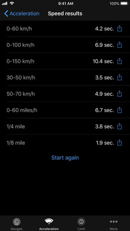 √ Measure acceleration from 0 to 60 mph and more