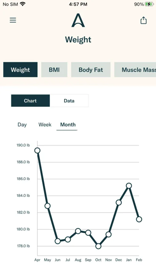 This app stores your weight data using HealthKit, so you can use it in Apple Health and other iOS apps.