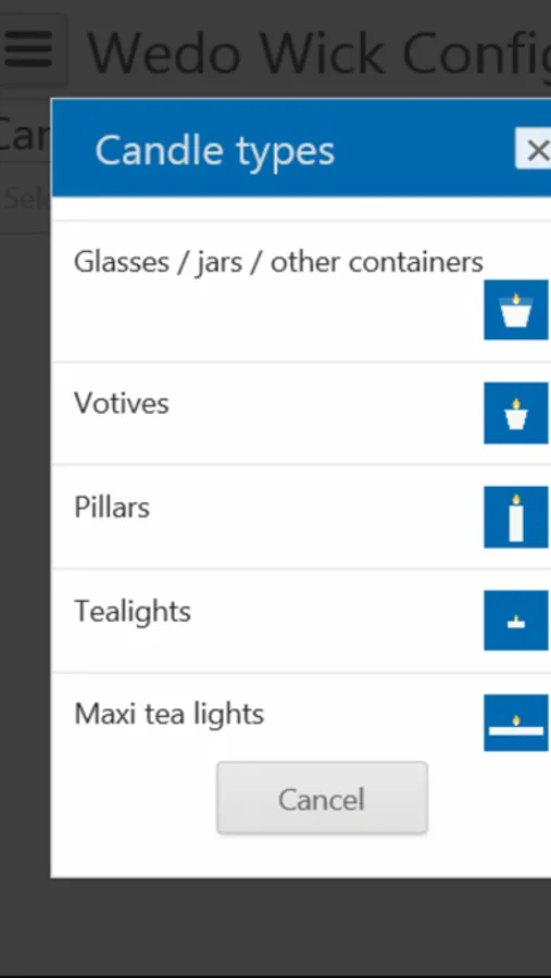 The Wedo wick configurator is designed to help candle manufacturers select wicks for initial burn testing quickly and effectively.