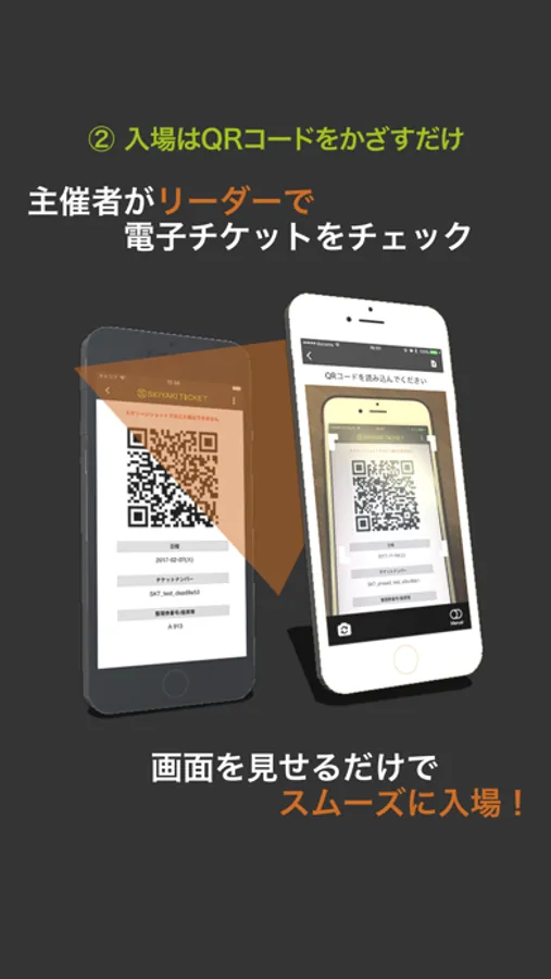 The entrance staff will verify your QR code with the SKIYAKI Reader app. After completing verification, you can enter the venue.