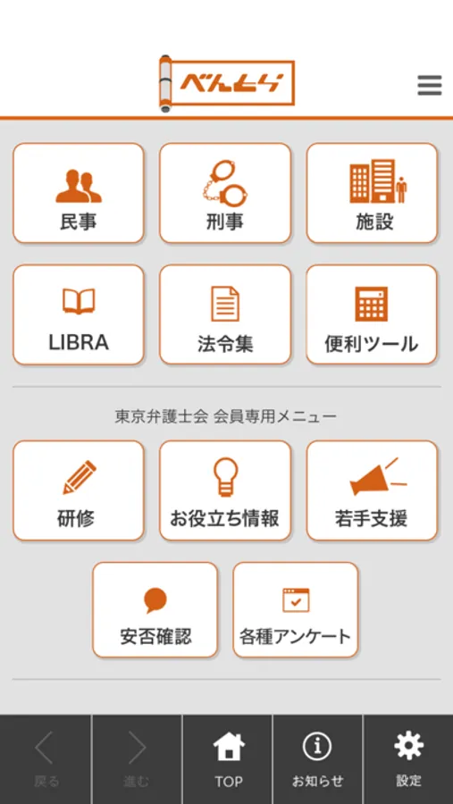 東京弁護士会が会員向けに提供する業務に役立つアプリ。