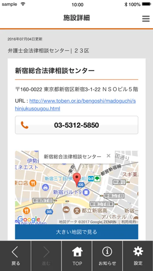 -裁判所,警察署,公証人役場などの施設情報(地図機能,電話発信機能)