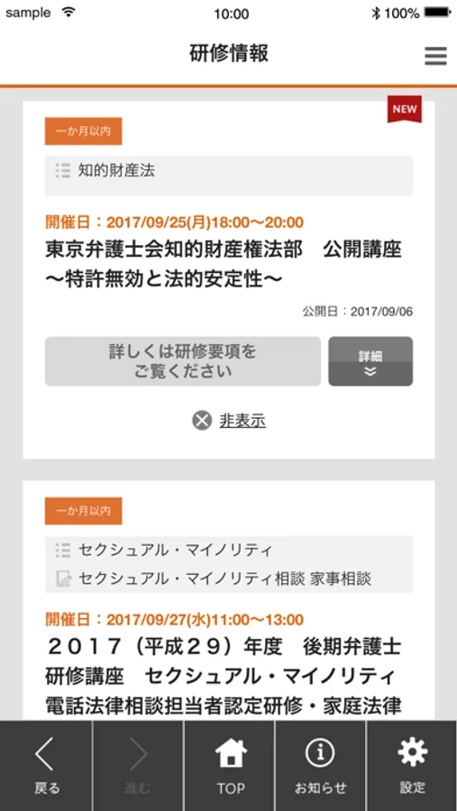 -弁護士会の研修情報(プッシュ通知によるお知らせ機能,申込機能)