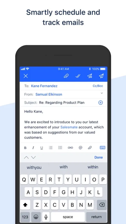 Salesmate is a powerful, all-in-one sales CRM solution that allows you to manage your business from anywhere, anytime. With the Salesmate CRM mobile app for iPhone and iPad, you can stay connected with your team, manage your sales pipeline, and close deals on the go.