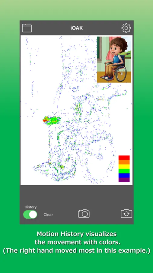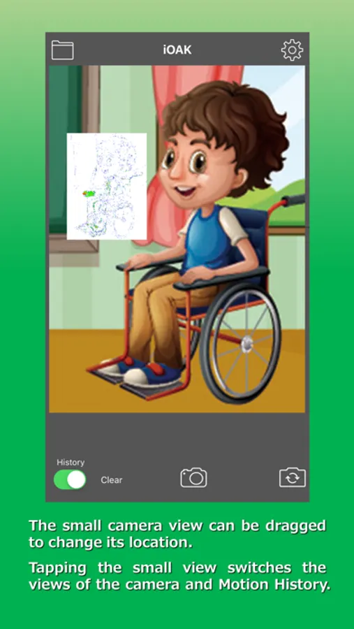 iOAK uses the camera to visualize the movement of the user and enables to control switches.