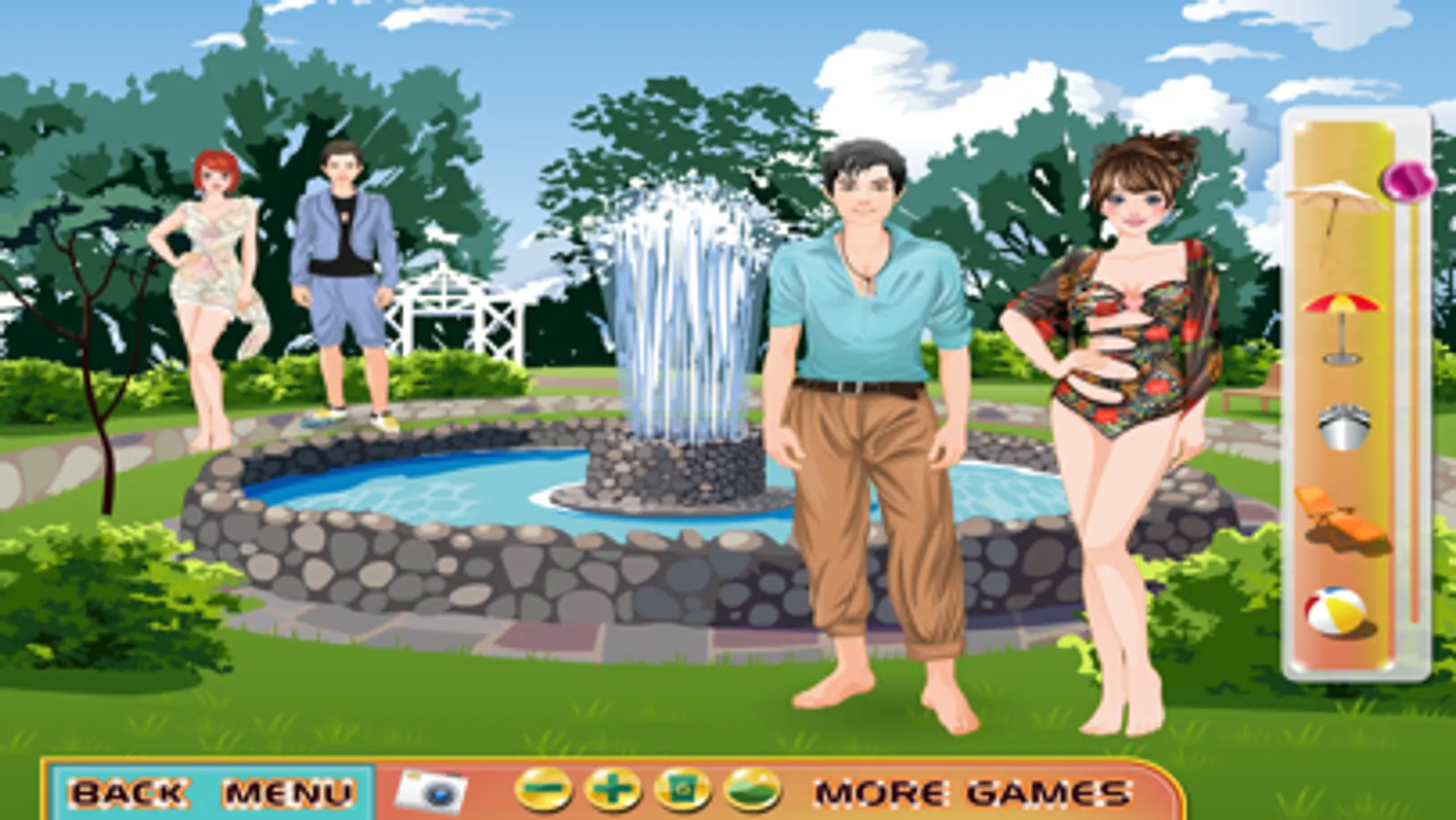It's a warm day, in the middle of summer holidays. Eva, Bob, Tessa and Tom are planning to go to the swimming pool today. Can you help them find a nice outfit? Of course a trendy hairdo is part of it, too. As it's so warm, it would be an idea to pin up the girls' hair, but it's up to you to decide whether this will happen. Combine different outfits, kinds of make-up and hairdos and put yourself in the place of a true fashion designer in this fun game! Put the chairs and umbrellas ready at the border of the swimming pool. Here the friends can sit down and enjoy this beautiful summer day. Take a picture of your nicest creation and share it on Facebook.