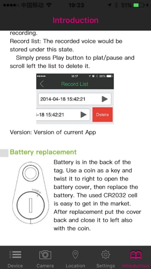 When in use, first open the phone APP, and anti-lost device pairing, such as the small anti-lost and key hang together, the user is looking for a key, simply press the phone APP point alarm function, anti lost will be issued sound, contrary to when looking for the phone, only need to click on the button anti-lost, the phone will sound