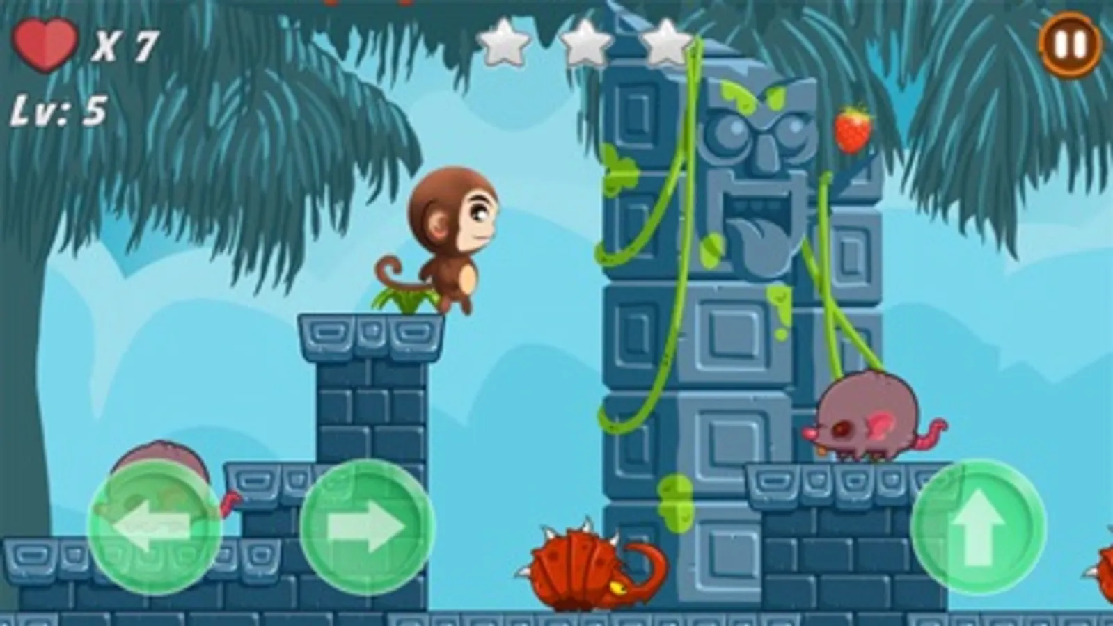 Help the monkey to collect as much as berries and complete the challenging levels in the jungle.