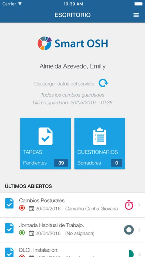 El detector de problemas de SmartOSH se llama SmartStatus. Te informará constantemente de si hay algo que ha caducado o si te has olvidado de valorar un riesgo.