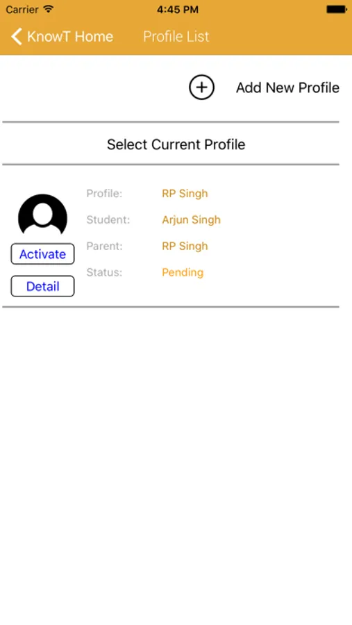 Parents activate their respective profile and get attached to the respective school (which needs to be signed up on the KnowT platform already).
