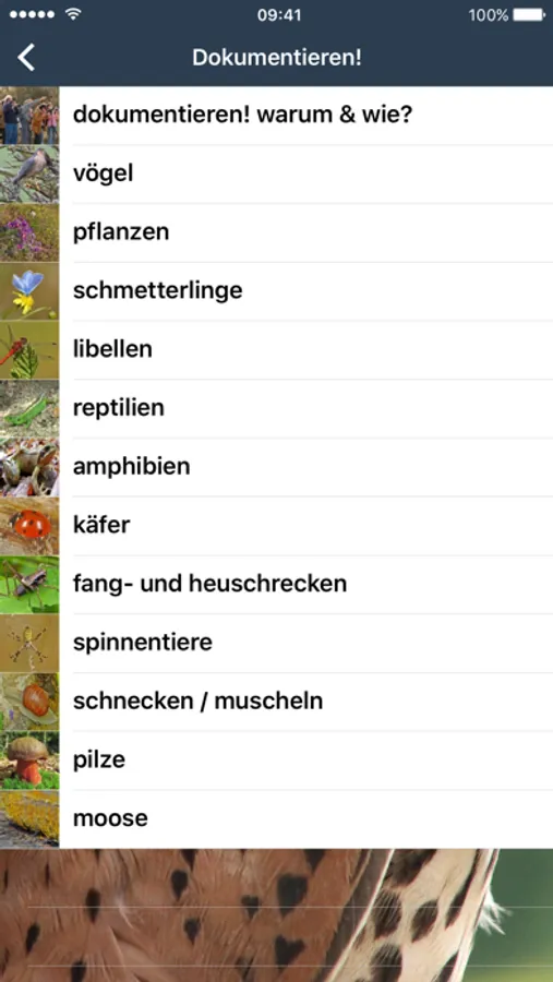 Die App "Naturbeobachten in Wien" stellt Ihnen zudem in einem Lexikonbereich die Dokumentationsgrundlagen für die wichtigsten Artengruppen vor. Für den Fall, dass Sie auf Unbekanntes stoßen und noch keine Erfahrung mit einer dieser Artengruppen haben, können Sie hier nachlesen, worauf Sie bei der Dokumentation Ihrer Beobachtung achten sollten, damit ein Fachmann Ihnen nachträglich bei der Bestimmung helfen kann.