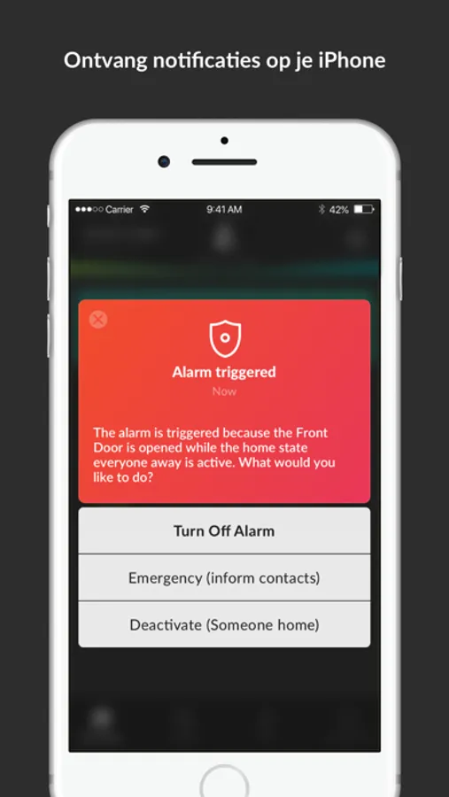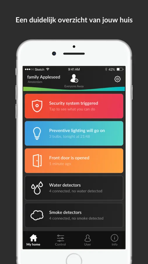 * Ontvang een bericht op je telefoon wanneer er rook of lekkage gedetecteerd wordt.