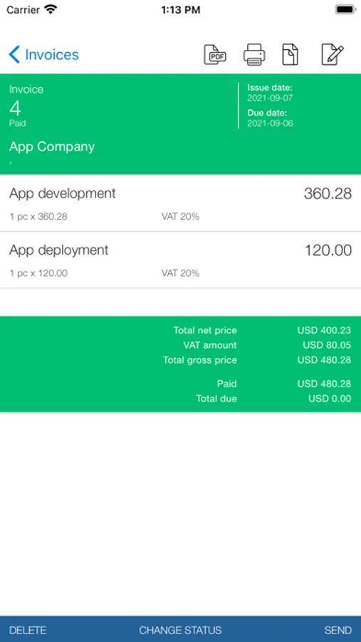 - send invoices directly from the app
