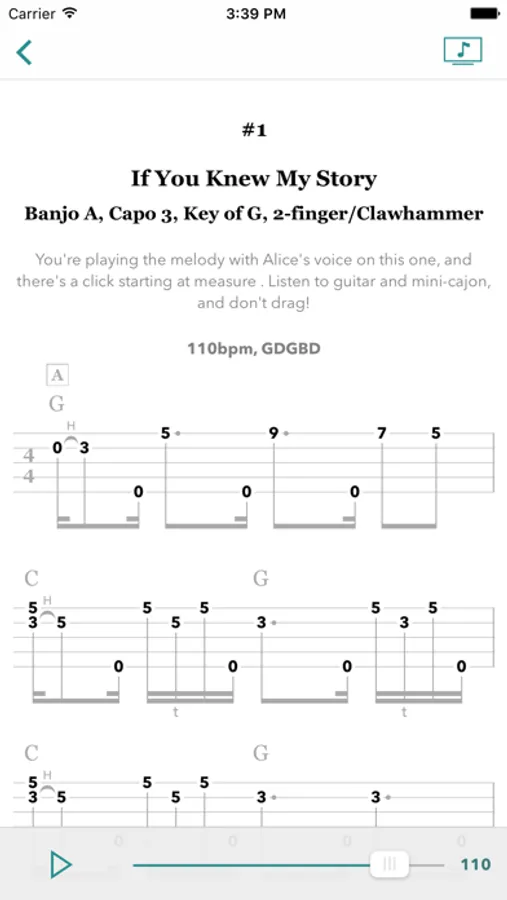 You get tab (that plays along with you!) and split-screen video to clearly demonstrate the banjo parts for “Bright Star.”