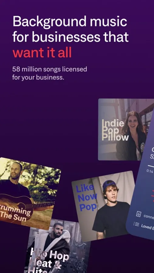 The only music streaming service for businesses where you can select exactly what to play, helping businesses find their sound since 2013. Get the playlists you want, stations and endless streams of music that get curated, revised and refreshed each week. Save time finding music, save money keeping it all legal!