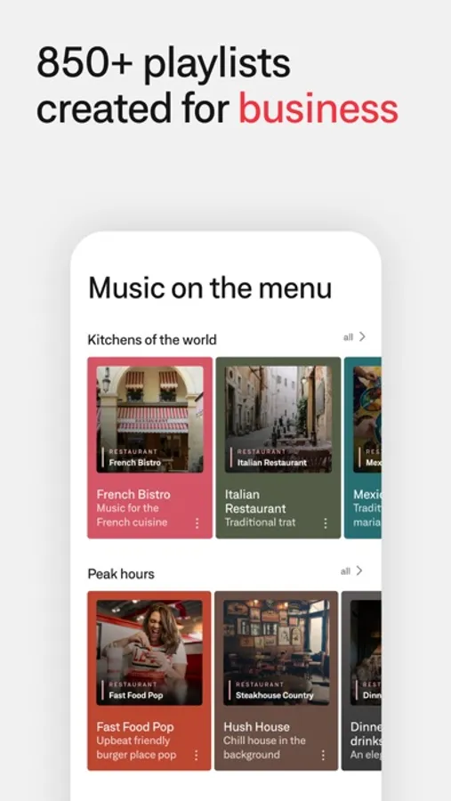 • 850+ playlists designed for business