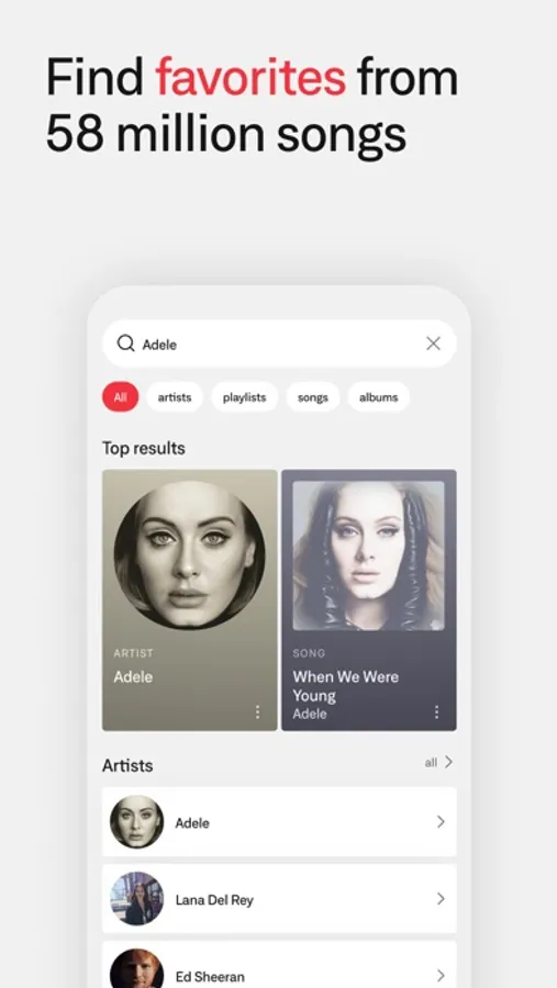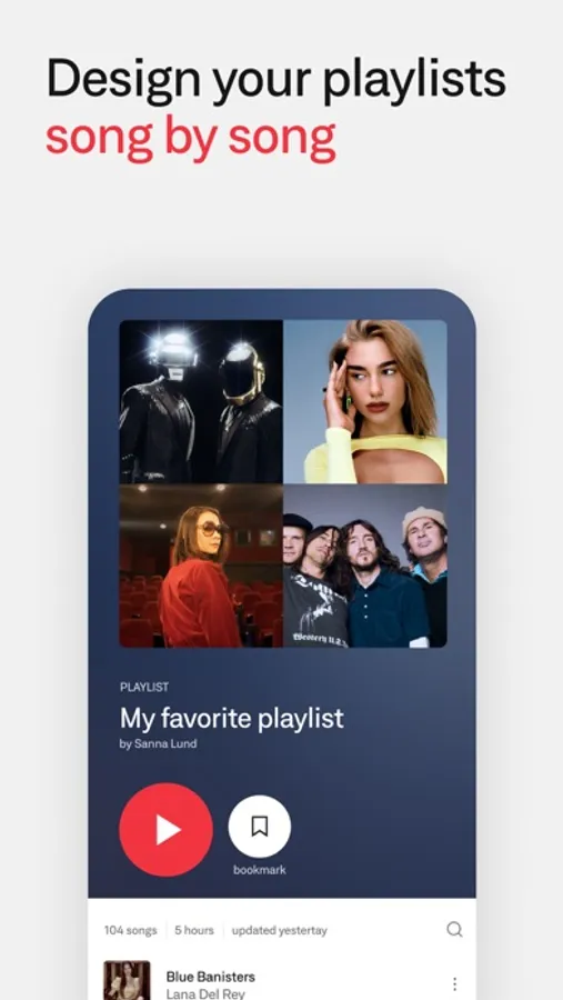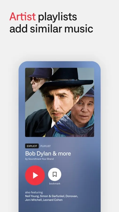 - Personalized recommendations. Artist and song searches include suggested playlists and similar music, ready to save and edit however you want