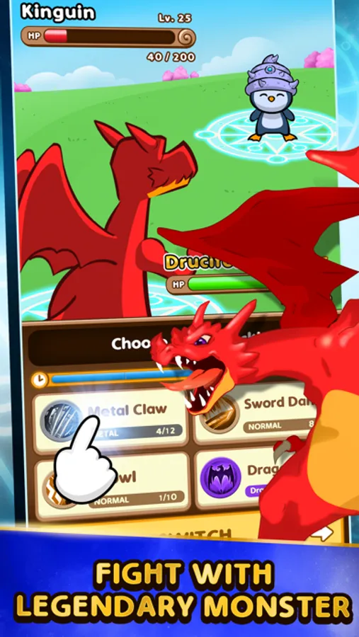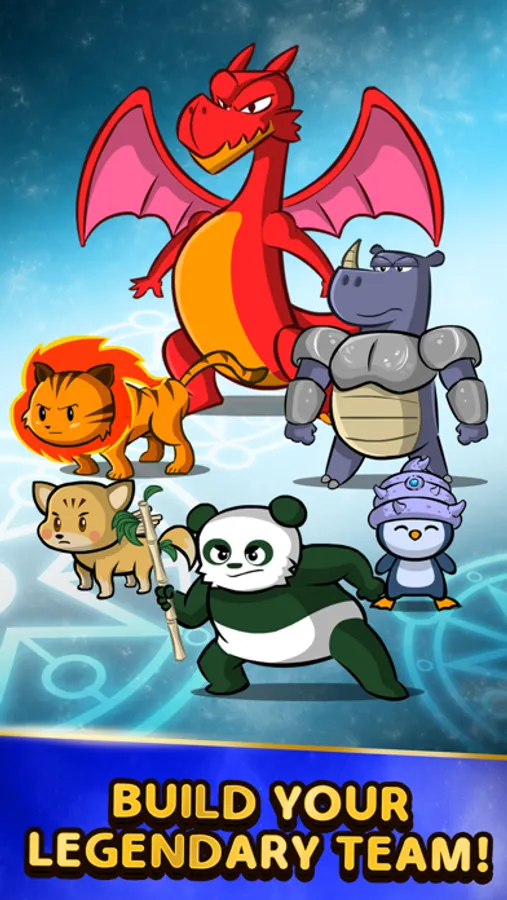 Battle against team of up to 4 monsters, including Dragons, Panda, Penguin and much more.