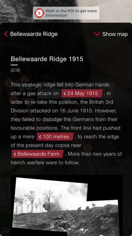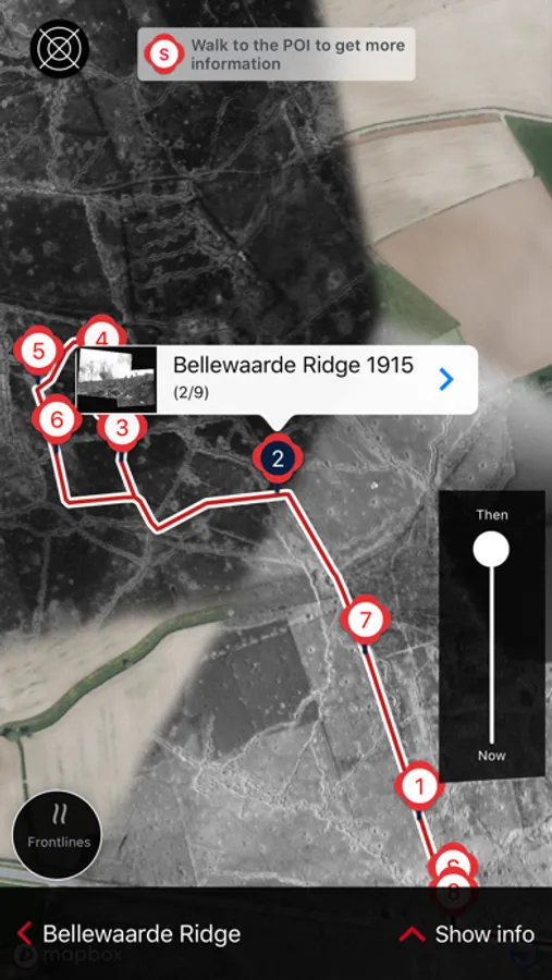 This app helps you explore the war landscape around Ypres. It will immerse you into the First World War and help you unveil the vestiges of battle and the historic sites. More exciting still, the app allows you to virtually walk on top of the front line trenches. So that you experience how incredibly close the front lines were to one other and how dense the trench network was.