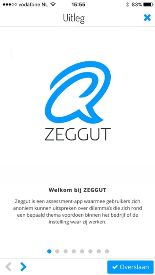 Zeggut is een inventariserings-app waarmee gebruikers zich anoniem kunnen uitspreken over dilemma’s die zich rond een bepaald thema voordoen binnen het bedrijf of de instelling waar zij werken.
