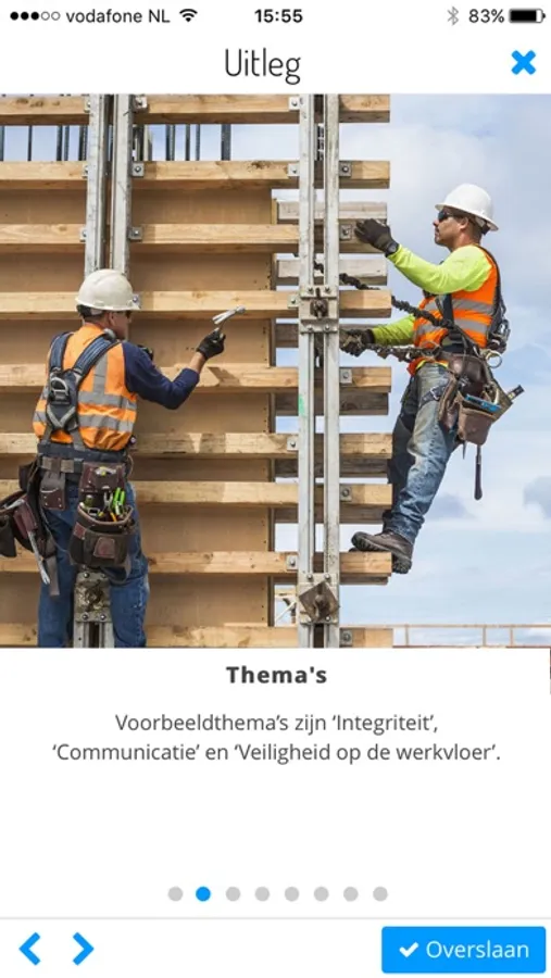 Voorbeeldthema’s zijn ‘Integriteit’, ‘Communicatie’ en ‘Veiligheid op de werkvloer’.