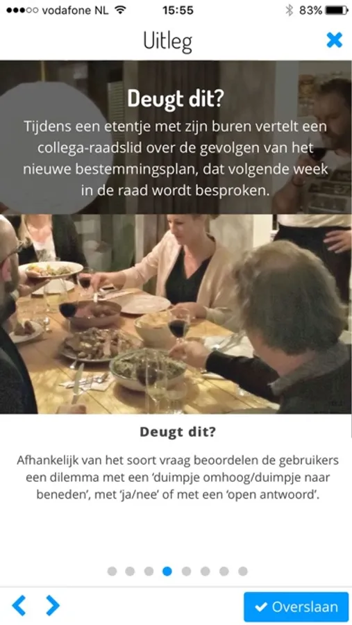Afhankelijk van het soort vraag beoordelen zij een dilemma met een ‘duimpje omhoog/duimpje naar beneden’, met ‘ja/nee’ of met een ‘open antwoord’.