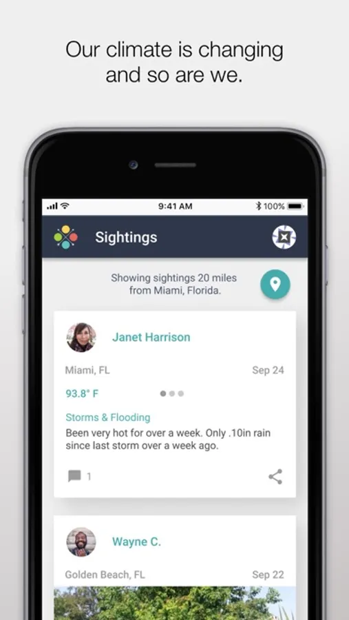 • Post a sighting: The best posts combine detailed stories and photos to show what you’re seeing in your environment and how it affects you. We then sync your stories to local weather data and trends.