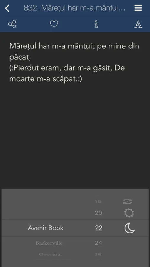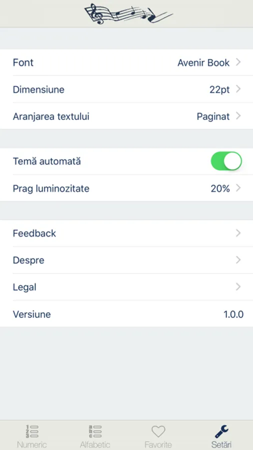 Fiecare cântare poate fi trimisă (SMS, e-mail, etc) sau adăugată în lista de Favorite. Pagina de informații a cântării conține un buton care activează emiterea sunetului fundamental al tonalității cântării.