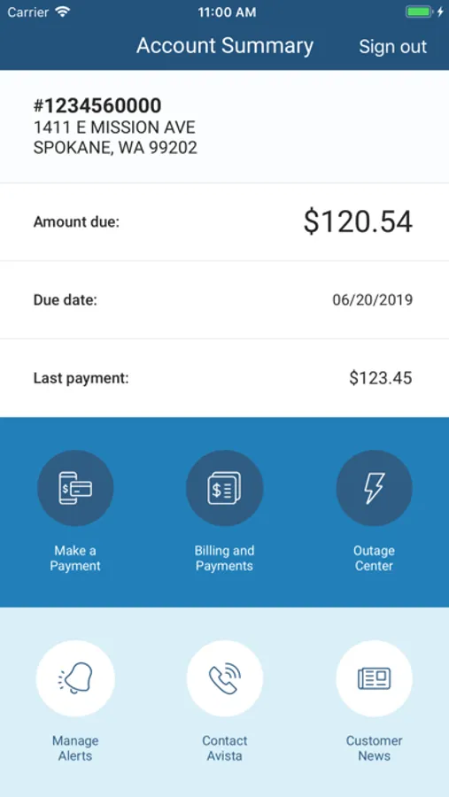 • Sign up for and manage in-app push notifications for billing reminders or outage events