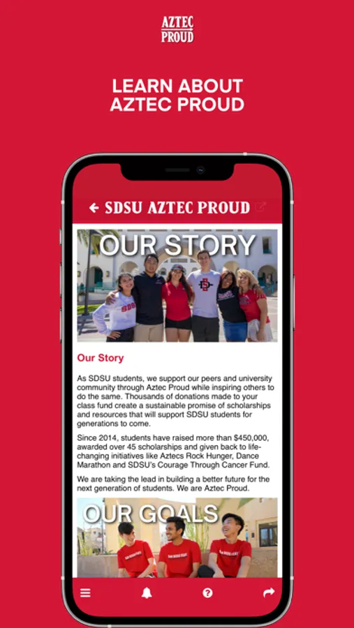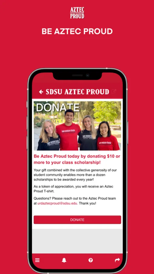SDSU’s Aztec Proud is a student philanthropy program providing a legacy for future generations. Through the app, students: