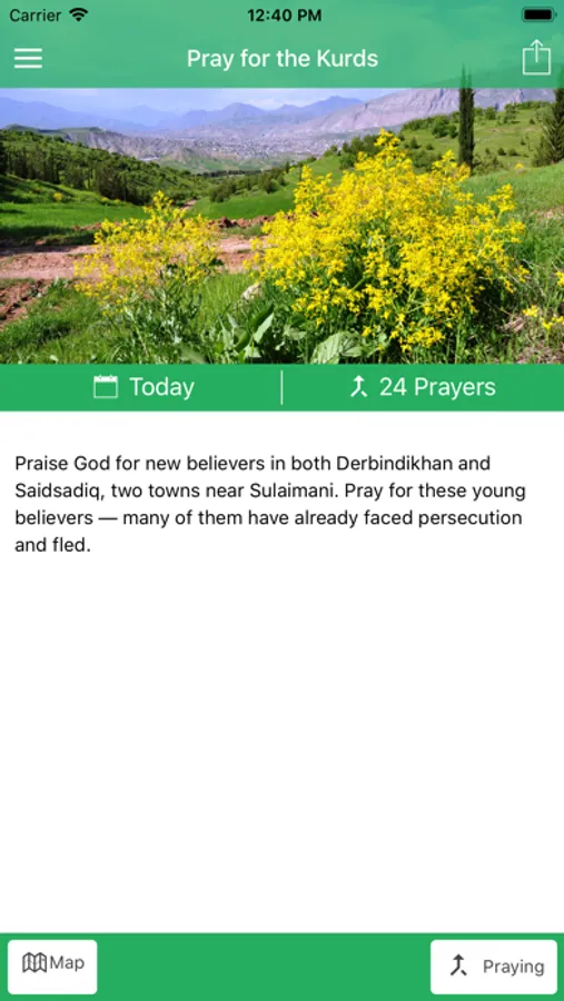 This daily prayer guide provides a rich opportunity for you to join believers around the world in prayer for the 35-40 million Kurds worldwide. Through the app, you will receive daily prayer requests and praise reports to use during your prayer time. You can see how many people who are praying alongside with you. You can learn more about the Kurds, and discover their rich culture. The app also provides a tool for you to set daily reminders to prompt you when to pray. This app was designed to help you to grow as a global believer, and pray for God to work among the Kurdish people group.