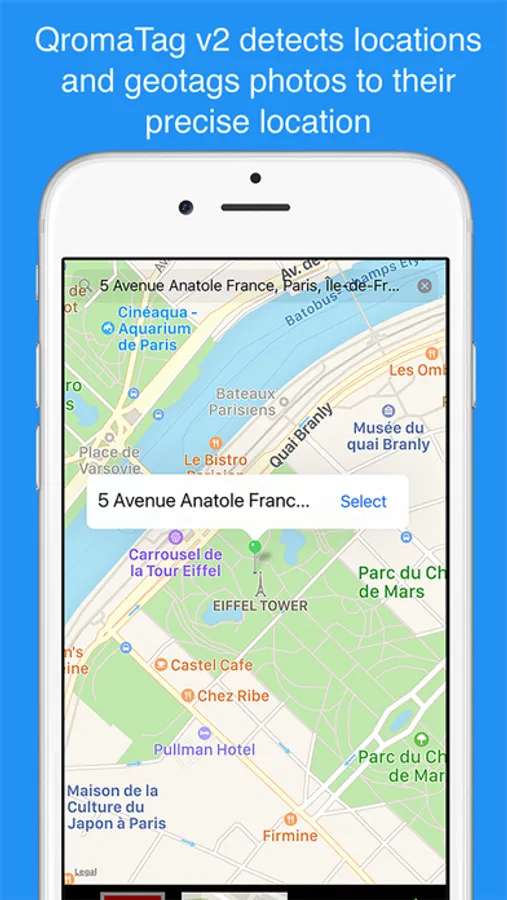 * Say an address or a well known location, and QromaTag will geotag your photo to precise locations, including GPS coordinates and IPTC City, State and Country tags.