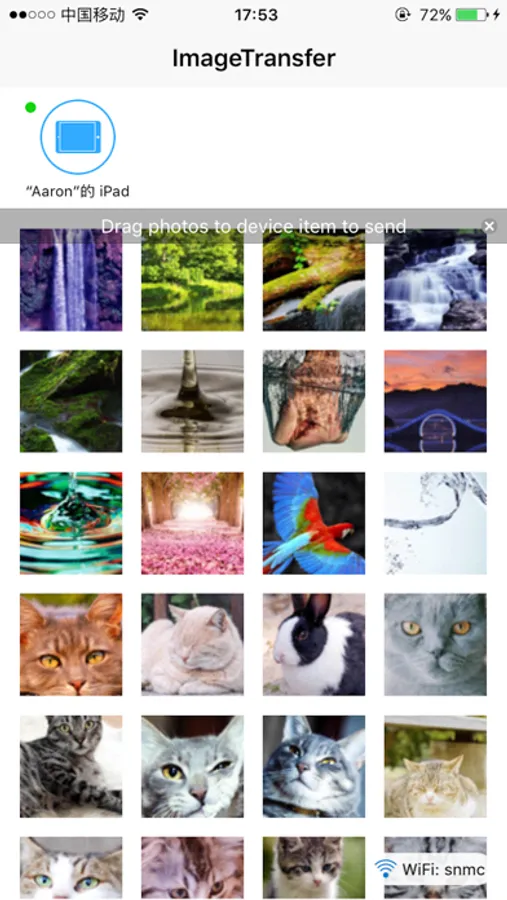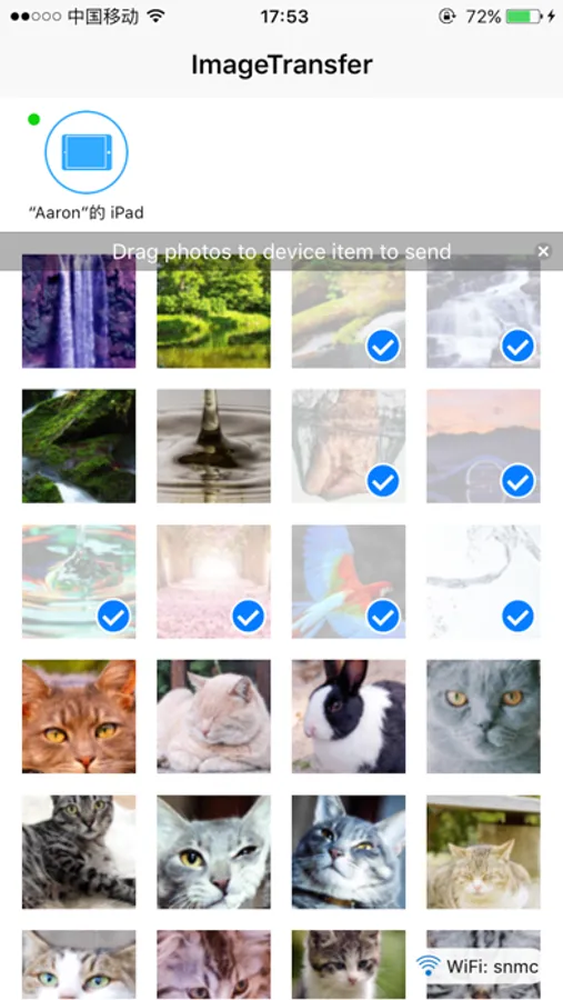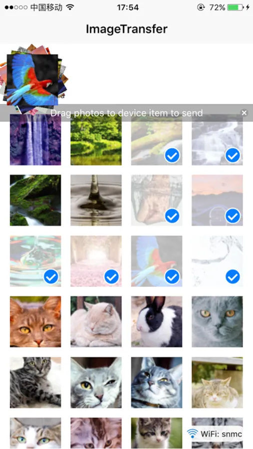 3. Select images you want to share, drag to device icon which you want to send and drop;