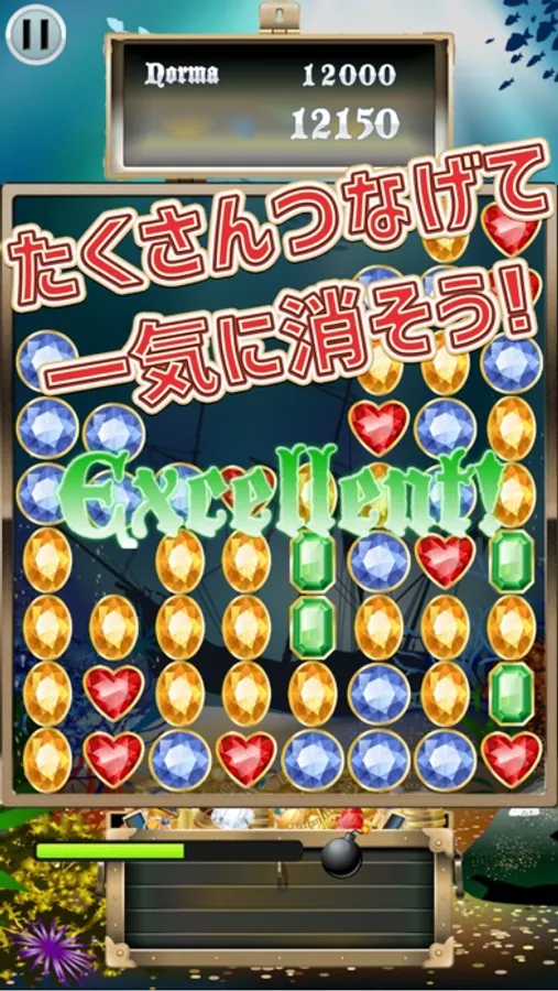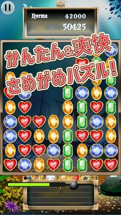タテ・ヨコ2つ以上並んだ同じ色の宝石をタッチして手に入れましょう!
