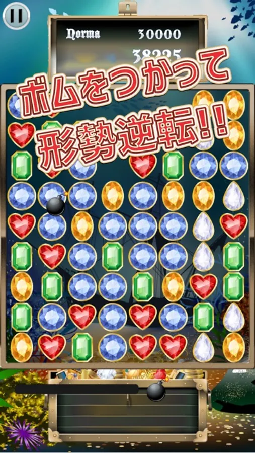 爆弾を使うと、爆弾が付いた色と同じ色の宝石を一気に消すことができます!
