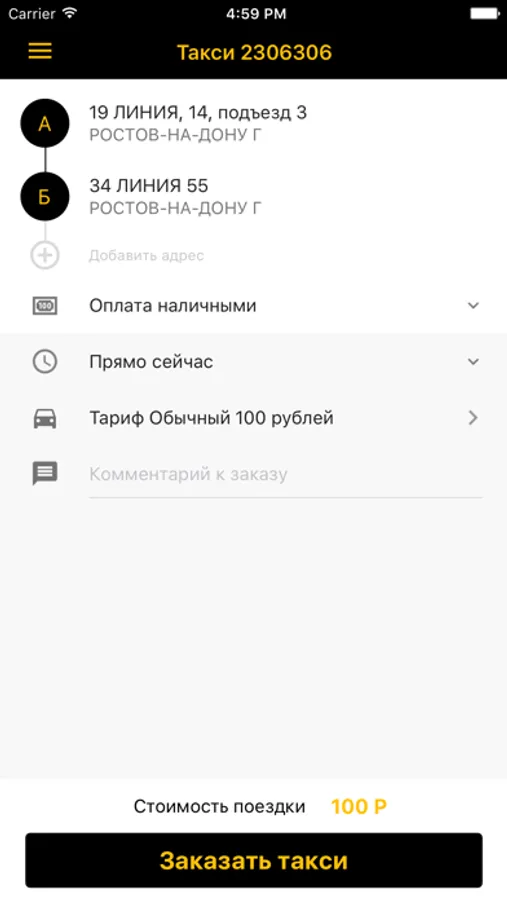 Приложение для заказа такси через интернет, в городе Ростове-на-Дону, Батайске, Аксае позволяет: