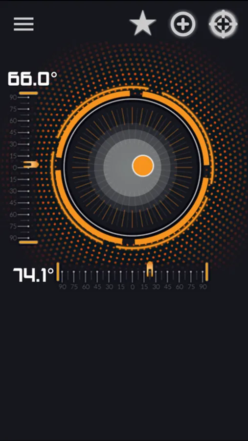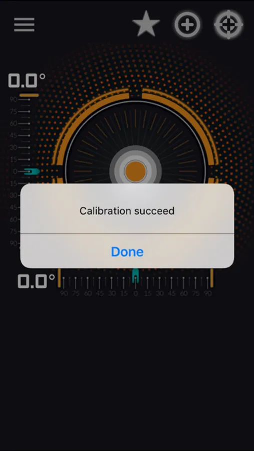 If the surface is horizontal, the ball, shown on the screen, will be in the exact center of the circle and the center will turns white.