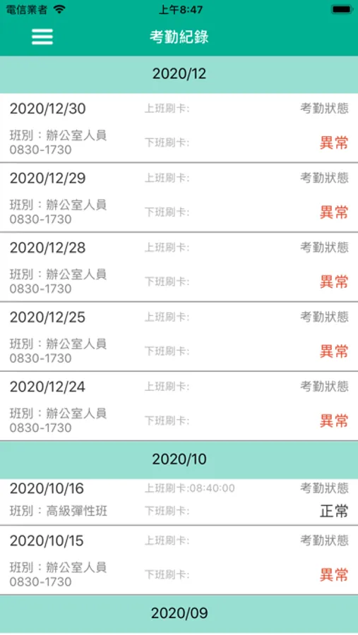 考勤紀錄:查詢個人每天刷卡考勤紀錄。