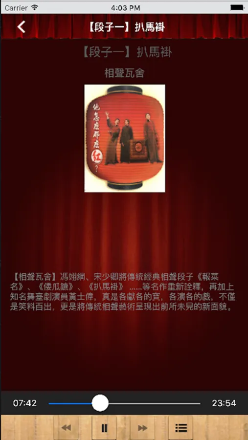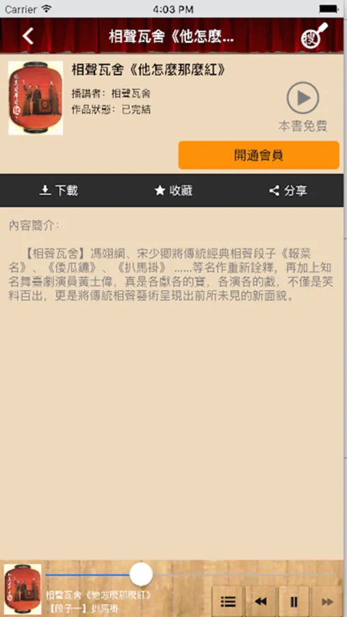 2.隨時隨地、想聽就聽,說唱相聲,提供回味樂趣,名家大師的幽默智慧與機鋒對話,時時刻刻,提供點選